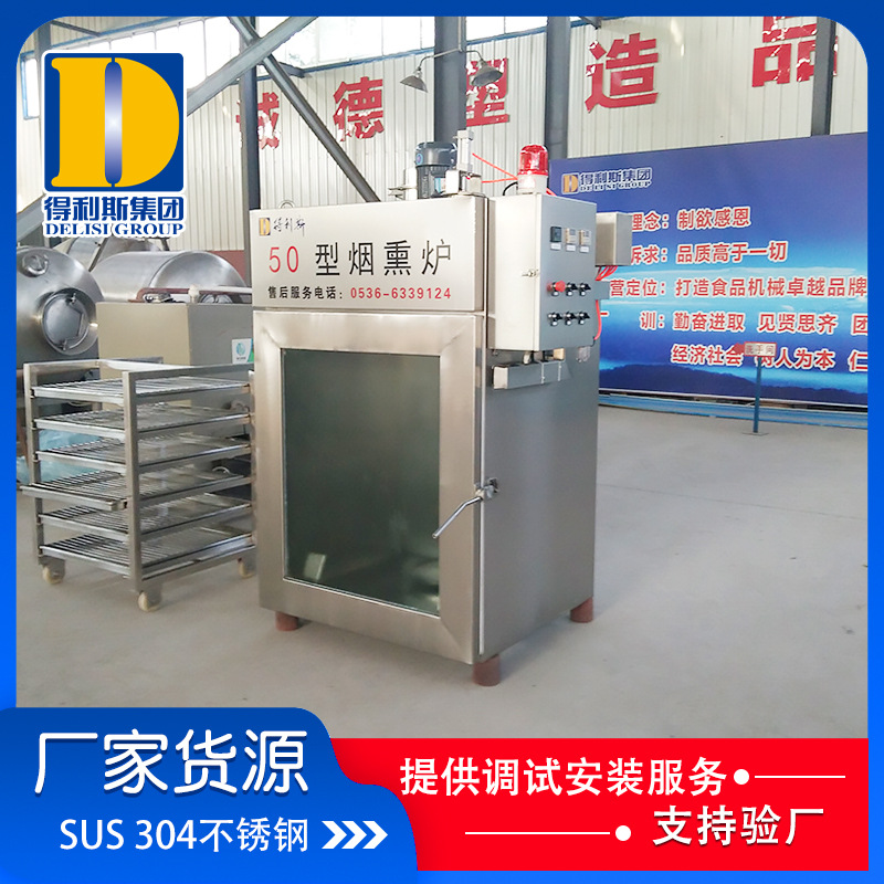 全自動煙熏爐的發煙系統: 外置式木粒、木屑發煙系統,不僅使產品產生果木香氣,而且可以使產品熏成由淺入深的金黃色。外置全自動煙熏爐分體式糖爐發煙系統,可熏制傳統的中式產品,產生糖熏味道,并且顏色可以控制,深可以成為棗紅色。兩種發煙系統同時使用能產生煙熏香氣和顏色。門上木粒發煙系統,采用世界上先 進的內循環發煙工藝,低氧狀態發煙,縮短煙道長度,降低能耗,減少設備占地面積。材質、保溫 箱體結構以單車為單元,可以拼裝成不同的組合。材質采用進口SUS304不銹鋼拉絲扳。保溫層采用進口聚氨酯保溫材料,耐高溫一次成型,保溫性能好。控制元器件 PLC、人機界面、電磁閥等關鍵元器件采用進口產品。加熱方式 采用外接蒸汽加熱或電加熱方式。配備在線清洗系統。門鎖和門合頁及密封條設計合理,密封嚴密,操作方便。生熟區門互鎖,區域隔離,符合HACCP要求。