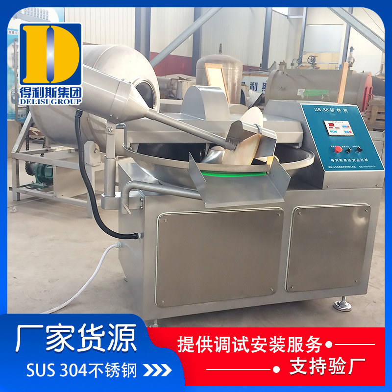 6、配有出料器,出料方便、干凈。 斬拌機可對肉類,水果蔬菜,海產品及調味品,進行深加工。刀高速旋轉,可以縮短運行時間,減少物料發熱量,保持餡料的色澤。